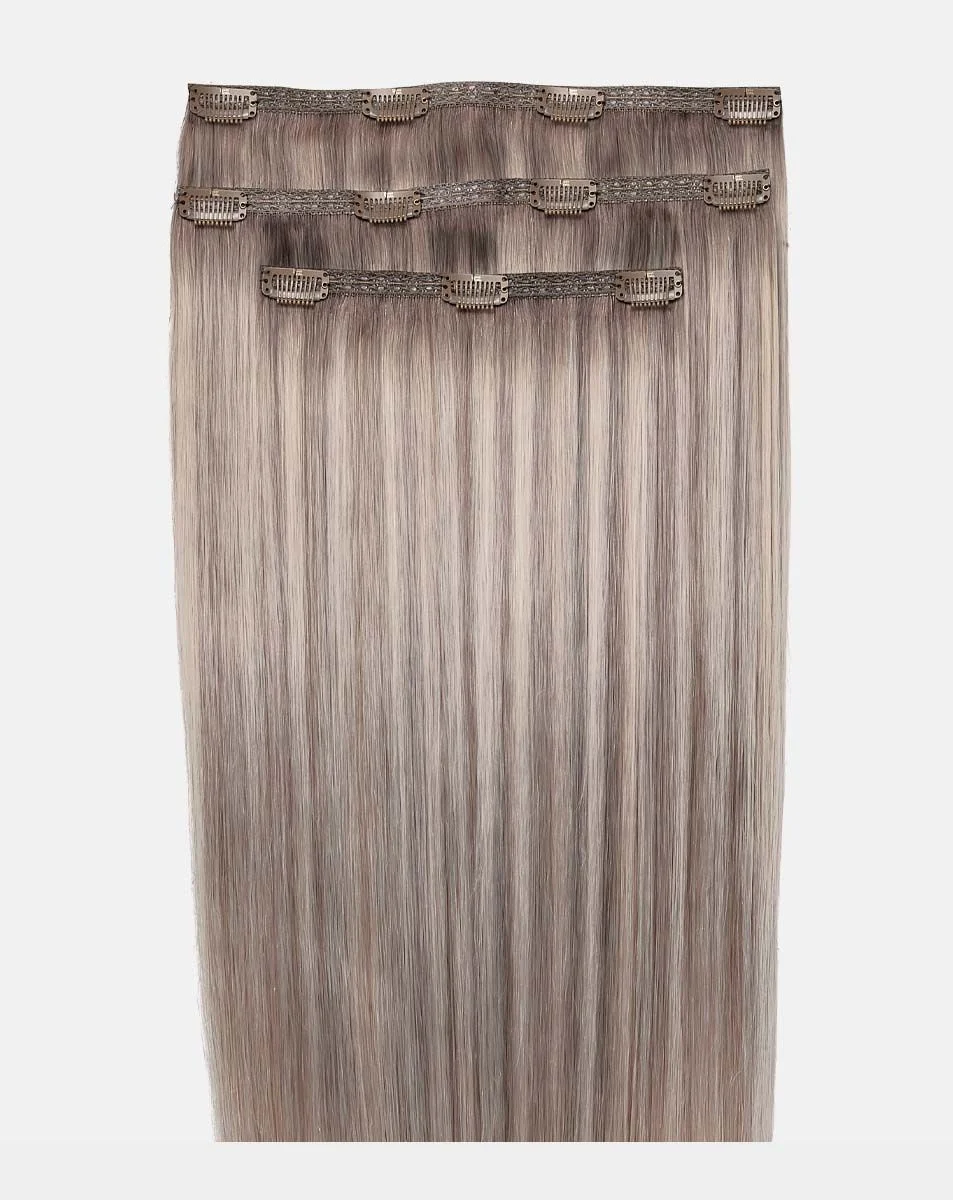 For Fine to medium hair types.Beauty Works Award winning Deluxe clip-in hair extensions are the ultimate DIY extension system. Easy to apply in the comfort of your own home without glue or special tools – these clip in extensions let you change your hair length as often as you change your mind. A Hairdrobe® essential, these clip-in hair extensions usually last many months or can last up to a year depending on the general care they receive.Our clip-in system has been cleverly designed using a unique three piece system, using a lace weft structure the hand selected hair is compacted onto three easy to use flat weft strips. Allowing you to wear your hair in a variety of hairstyles that our completely discreet and lightweight. Featuring a protective silicon layer on each clip to cushion your natural hair and protect breakage.Our deluxe clip-in extensions our made from hand selected 100% Remy cuticle retained human hair to create a natural look you would normally associate with permanent salon hair extensions. The cuticle retains the hairs natural shine and vitality allowing the hair to behave tangle-free throughout its lifetime. This hair type is reusable and can be heated, styled and washed just like your own hair. And while Remy human hair can be more of an expensive pick, with the proper care, it is durable and can last many months.