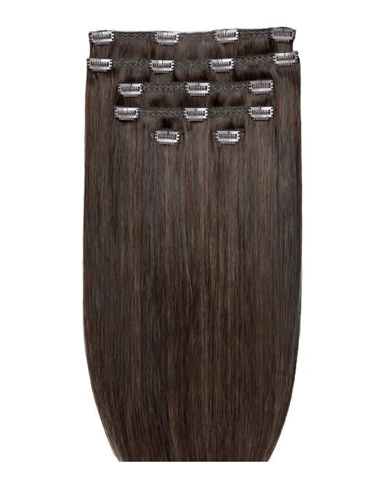 Each pack contains a full, thick set of clip-in hair extension wefts, compacted down onto six easy to apply clip-in wefts. At 220g per pack these clip-in hair extensions are designed for achieving super thick, full-bodied hair in an instant.