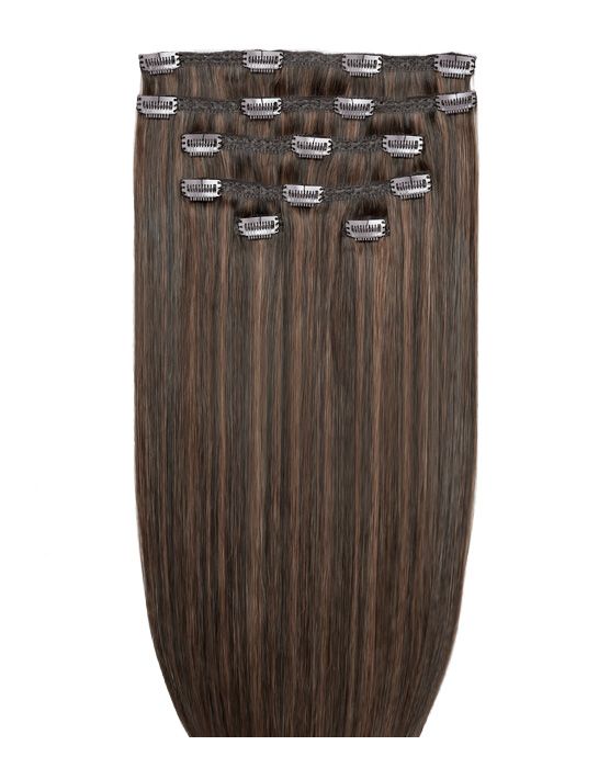 Each pack contains a full, thick set of clip-in hair extension wefts, compacted down onto six easy to apply clip-in wefts. At 220g per pack these clip-in hair extensions are designed for achieving super thick, full-bodied hair in an instant.