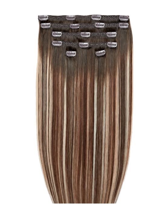 Each pack contains a full, thick set of clip-in hair extension wefts, compacted down onto six easy to apply clip-in wefts. At 220g per pack these clip-in hair extensions are designed for achieving super thick, full-bodied hair in an instant.